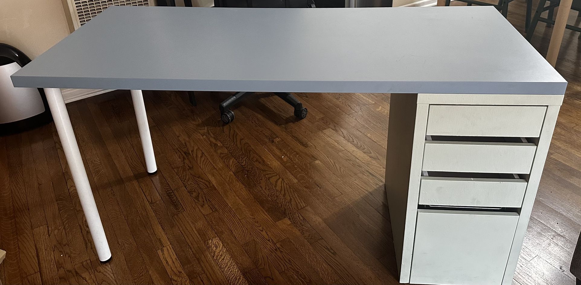 Computer desk and drawer from IKEA In great condition—- moving out so cannot keep 55 inches in length 23 1/2 inches in width 29inches in height