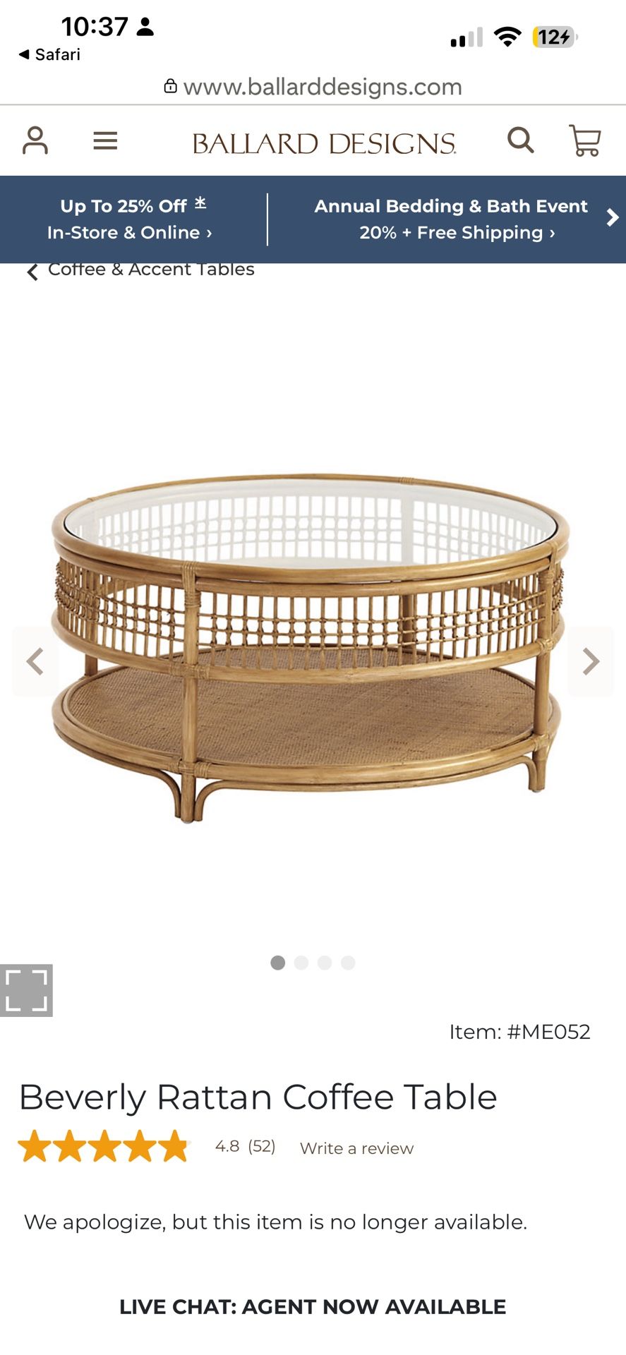 Discontinued Ballard Rattan Coffee Table – Great Condition