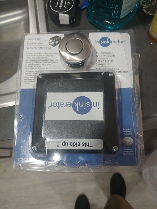 This is an inSinkerator sink top switch. Controls operation of your garbage disposal by a pushbutton. It goes in one of your extra sink holes. Whichever hole is not covered by your kitchen faucet base plate. The button is NOT ELECTRIC its mechanical so there's no electricity going through the switch whatsoever. In other words it cannot be damaged from being splashed with water. Splash it all day , this thing is good to go no matter what. Ive installed several of these myself. Easiest install ever. Costs $140 at HD, im selling it for $50