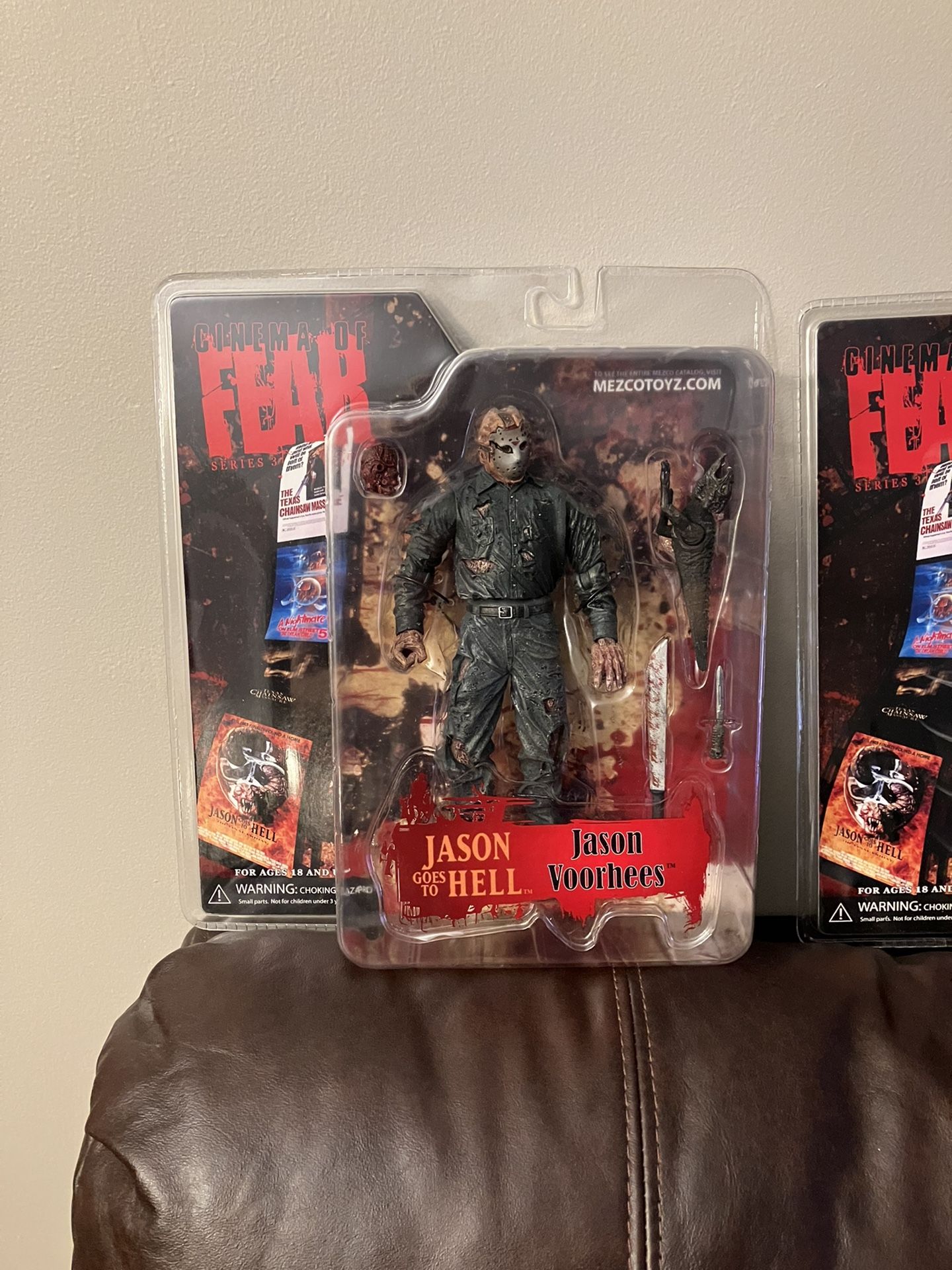 NOT FREE. Research them. Make a reasonable offer for the set or each one separately. Mezco Toys broke the mold when they introduced their first Cinema of Fear figure line in 2007. Then they followed it up with an awesome array of figures in 2008 for Series 2 and Series 3. Their character selection, accessories, and detail continued to amaze collectors. Even today, 15 years later, their figures are some of the best made and they continue to increase in value. Here is the complete third series the company made. Each figure is BRAND NEW, NEVER OPENED, and with a package as close to perfect as you are going to find. Not to mention, they were only displayed in a smoke-free, pet-free environment. This set is truly a rarity. You can spend less for used items, but I don’t believe you will find a brand new set in as awesome condition as this anywhere else. I have been looking. My price reflects the fair market value and quality of the set. Thanks for viewing.