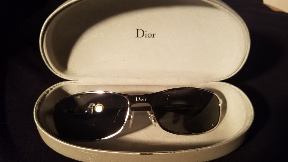 Genuine Christian Dior sunglasses with hard case! *There are scratches on outside of case* Swarovski crystals down each side, dark tint with silver frames They also say Dior on the silver and in black with Swarovski crystal on the lens "Hard Dior 2 Made in Italy" imprinted on inside These are selling used for $150+ Asking 110 OBO