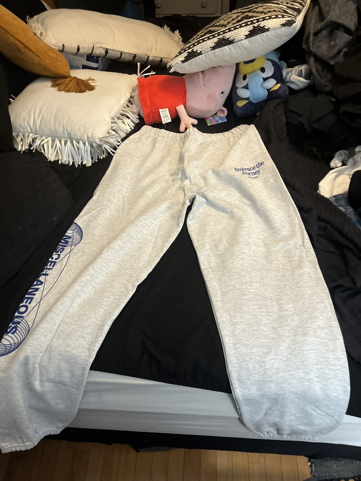 These are designer sweatpants made by the brand miscellaneous design studio. They are the oversized look size large They are the wide leg type sweatpants that everyone wants right now these are going for $150 everywhere. I’m willing to let them go for 75. They are brand new when you buy them, they don’t come with tags so there is no tags on them. You buy them straight from the designer and they come without tag they are 100% authentic as is everything I sell take a look at the other listings if you would like even better deal and just message me with any questions you may have