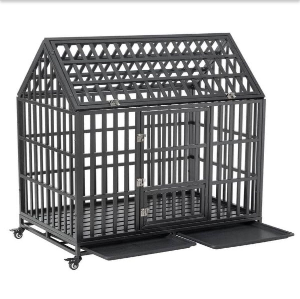 5370 Retails for $450 Home Depot NEW in box Easy assembly Pickup in Arcadia *Delivery available for a charge Overall Dimensions: 47.2 in. L X 28.9 in. W X 48.2 in. H. Each cage has a front door and a Roof Door, The both doors locked with 2 patent latches. These pet crate also have an ultra-durable, multi-layer finish that is much stronger than the in. electro in. or in. powder in. coats seen in inferior cages. This hammertone finished is rust, corrosion and fade resistant. Suitable for outdoor and indoor use. Every crate features 2 removable plastic pans, this design makes it easier to keep your pet clean and makes mess removal a breeze, the pans made from ABS for easy cleaning, it has an integrated lip around the perimeter to contain any mess, both trays are held securely in place to prevent slipping but can be quickly removed for cleaning Crates also feature 4 lockable caster wheels, all of which lockable to prevent accidental movement Please do not make the screws tighten when you firstly connect the parts, after the construction correctly, then tighted all the screws Front door dimensions: 26.2 in. H x 17.3 in. W space between bars: 2.4 in. size of square tube: 0.79 in. x 0.79 in. capacity weight: 220 lbs. wheels: 4 lockable