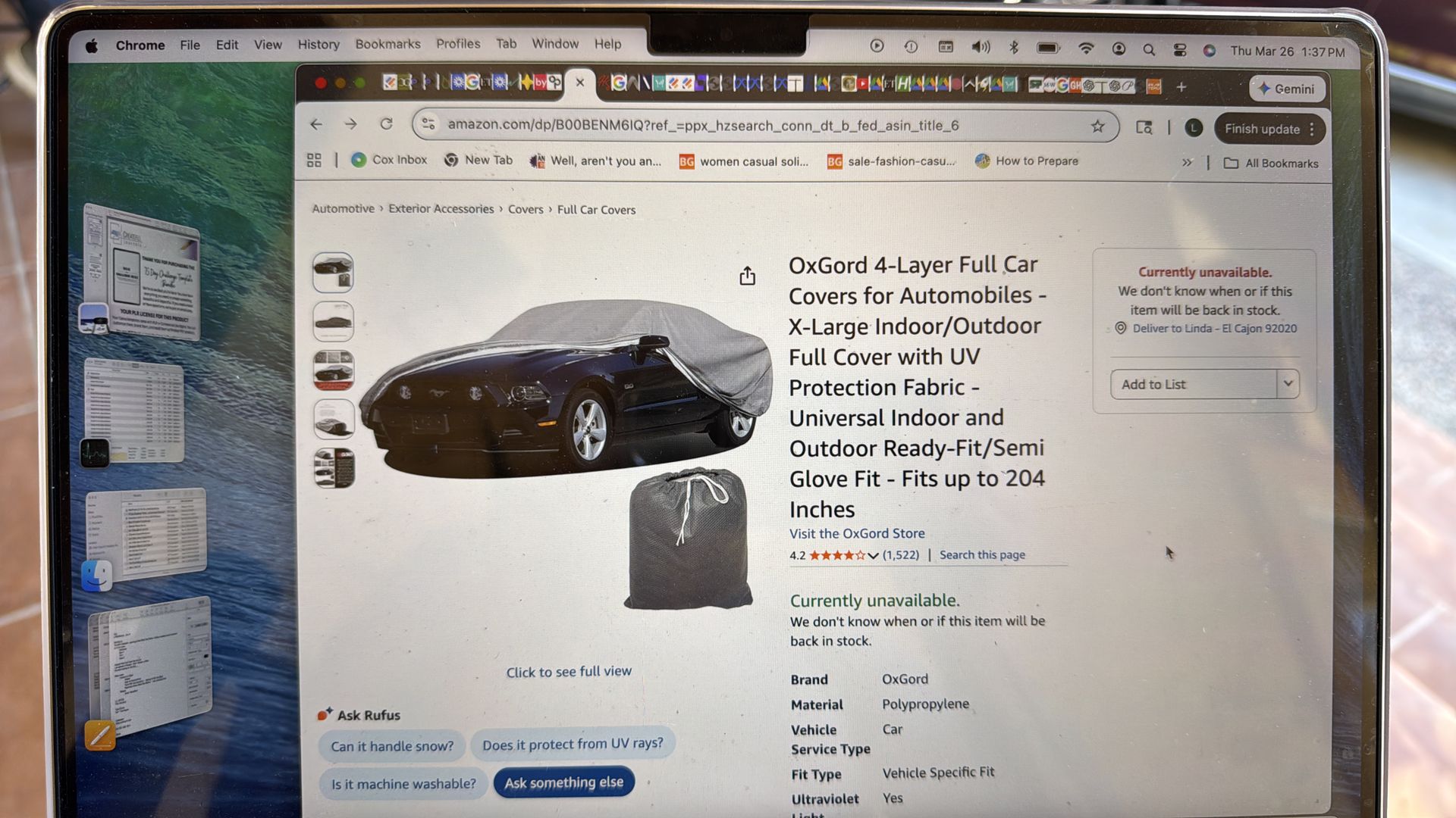 I have three of these and no longer need them. One fits a 1998 Chevrolet 8 foot bed super cab Chevy truck. The second one fits a 2011 Ford edge SUV.  The third one fits a 2000 Acura sedan. So any car like that. They are 4 layer—very heavy duty and were probably only used a couple of weeks each. If that much! They are in excellent condition.  Great for the summer months!  We will sell all together or of course, one at a time. $30 each