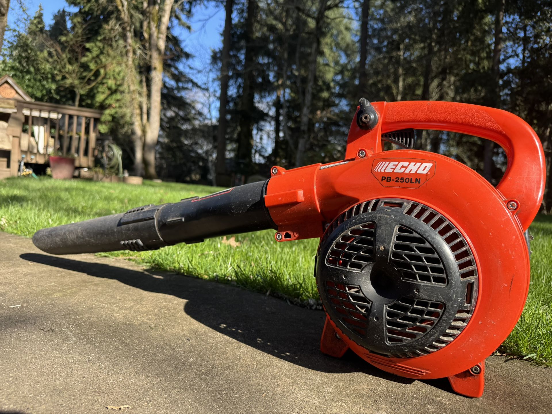 Commercial grade ECHO PB-250LN handheld leaf blower. Very quiet. That’s what the LN stands for in the model number. Low noise. Starts every time. We have too many blowers so we needed to let go of a few. She works great! $120