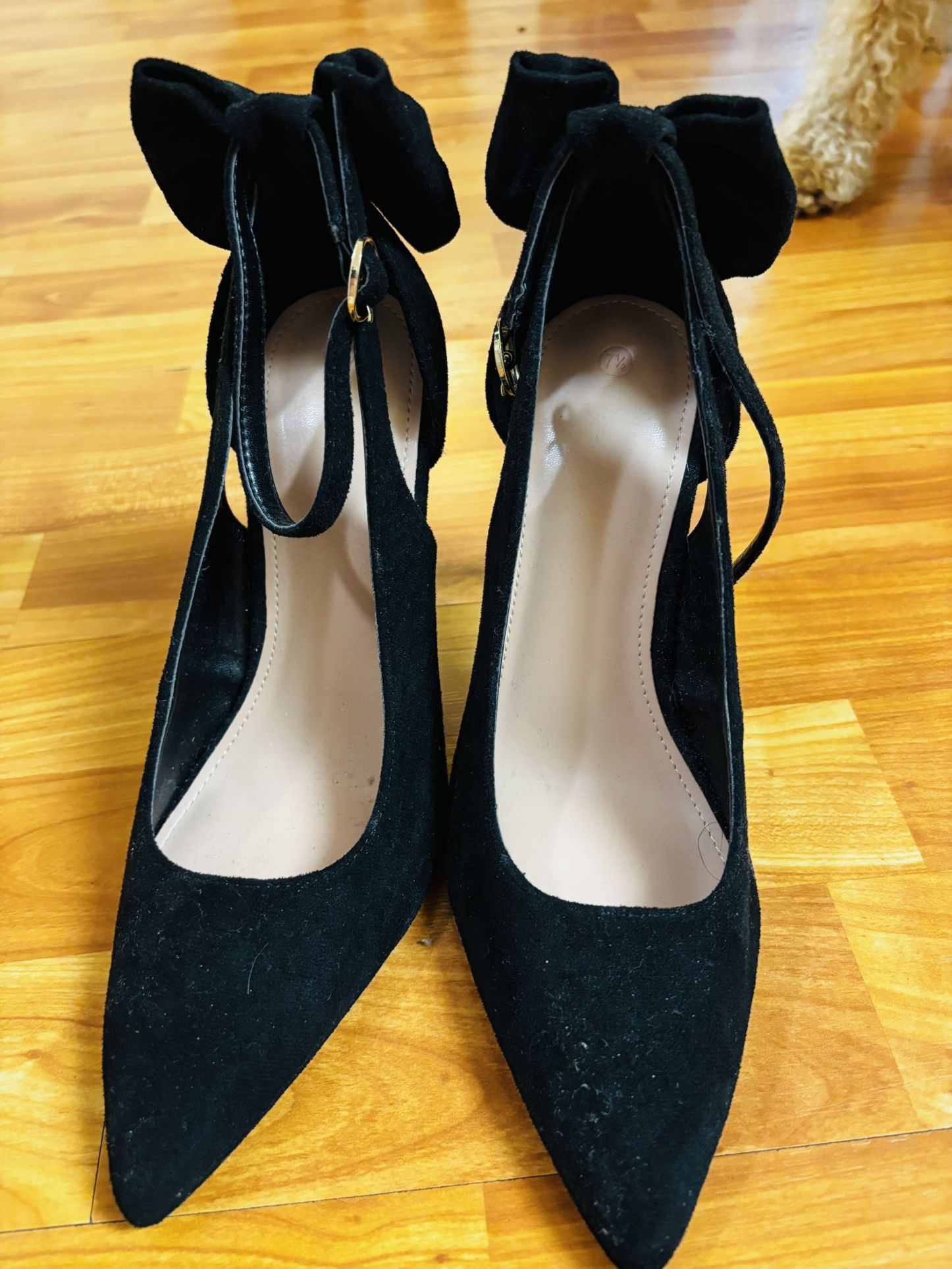 Never worn black velvet stilettos with bow 7.5 Non smoker