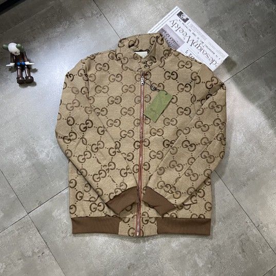 Gucci patchwork double G jacquard full print logo zipper cardigan jacket stand collar jacket Brand new Color: Khaki Size: M-2XL M L XL 2XL Length 68 70 72 74 Chest 110 114 118 120 Shoulder width 48 49 50 52