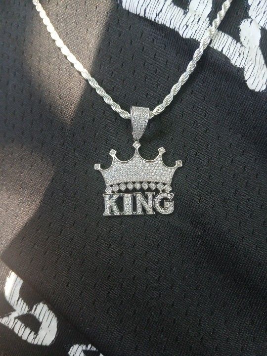 Ice out pedantes with rope silver/platinum chain . Iam tryna get rid of it for at least 160$ thats lowest i can go but gimmie offer , its made from italy and you want more info serious buyers only