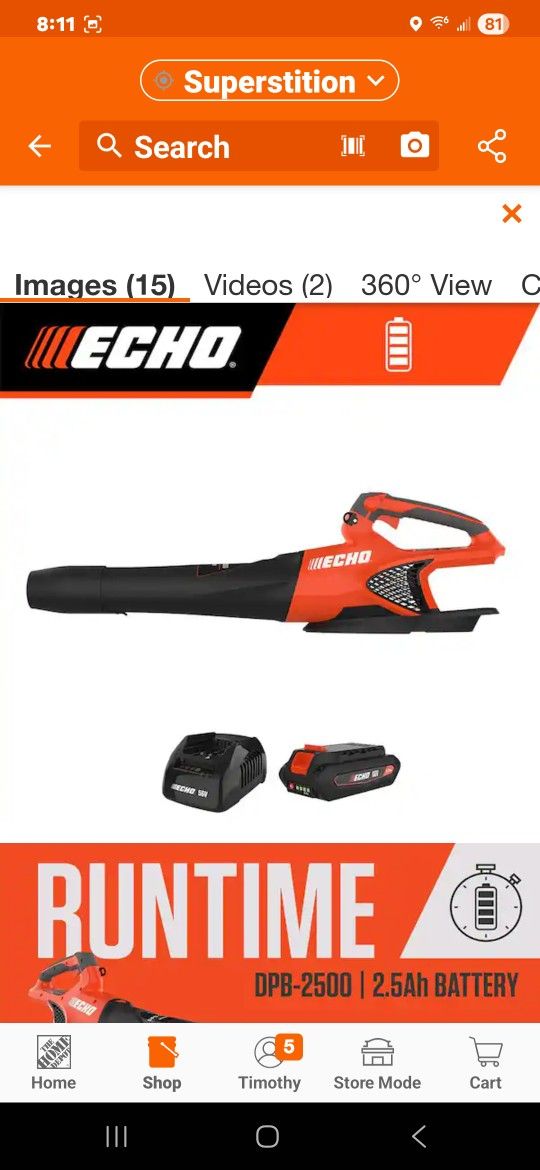 ECHO 56V 151 MPH 526 CFM Cordless Battery Powered Handheld Leaf Blower with 2.5Ah Battery and Charger