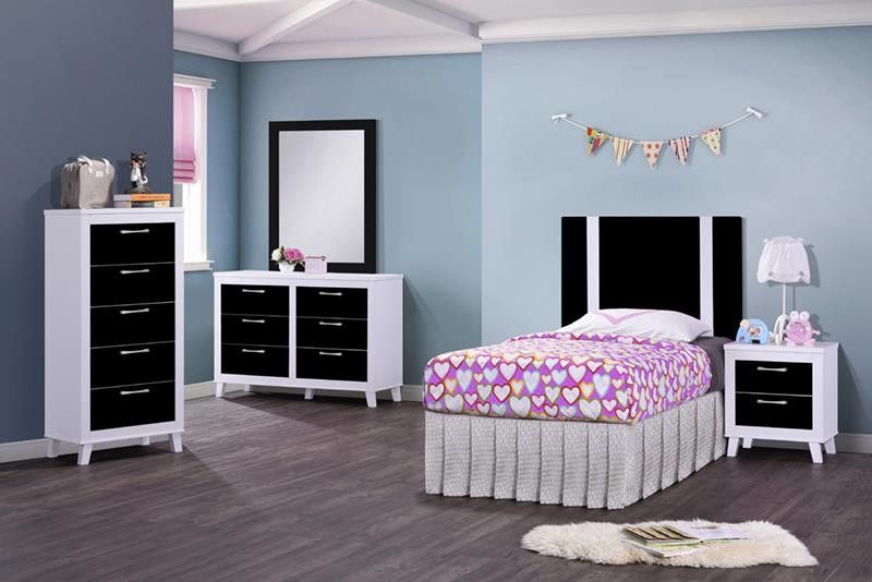 Bed new in the box 📦. Delivered directly from the warehouse to home within the same day of purchase. The kids five pieces featured twin headboard, chest, nightstand ,dresser and mirror. : Assembly available :pay upon delivery