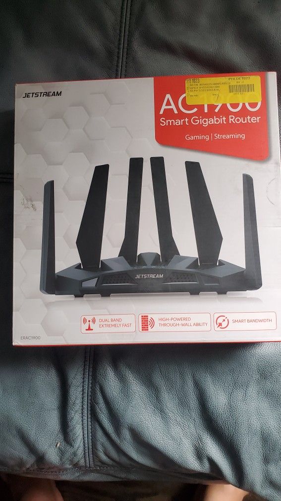 Wireless router. Dual-band 2.4ghz and 5ghz internet. Jetstream ac1900 for gaming and streaming. Upgraded to a better router. Looking to sell this.