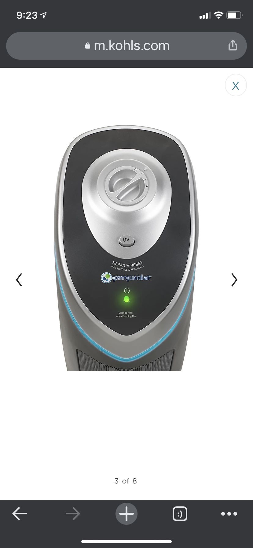 Germ, And Dust Guardian 22" Tower 4-in-1 Air Purifier with True HEPA Filter. Improves the air in your home and breath easier with this Air Purifier. Designed with allergy sufferers, choose from 3 speeds including a super quiet low speed. HEPA filter captures 99.97% of dust and allergens.