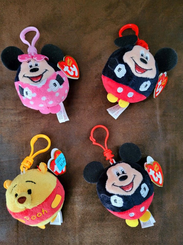 SET OF 4 DISNEY TY KEYCHAINS
