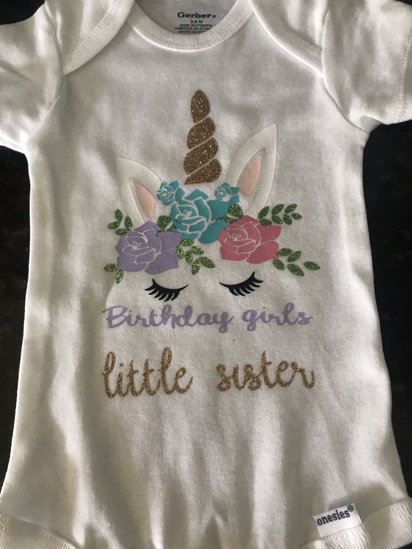 Personalized baby onesies available to personalize to whatever you’d like. prices start at 2 for $12 and up depending on all the detail any size available. These are available for purchase size 3-6 Months !! Clip N’ Snip Creations