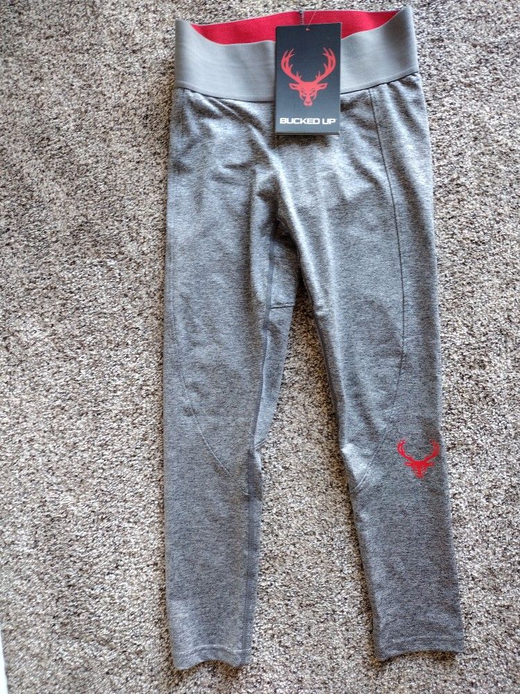 Bucked Up Women's Grey Cropped Athletic Leggings Workout Capri. Size Medium and Small I have 4 medium and 3 small available for $15 each or bulk price Also got some in Pink/ Red Gray Tag: working out gym athletic pants shorts running Nike Adidas fit Lululemon.