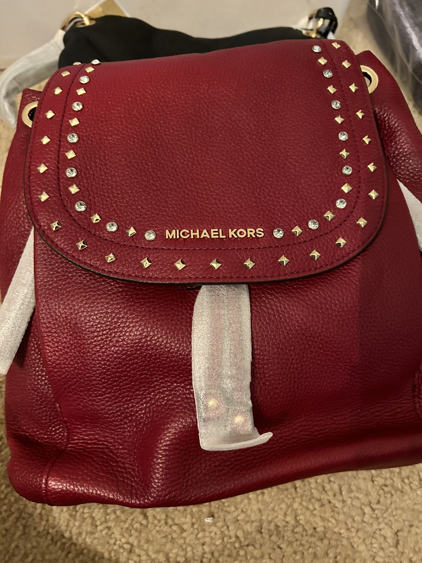 Authentic Michael Kors, backpack in and gorgeous red with metal trim. All leather brand new with tags makes a wonderful holiday gift.!