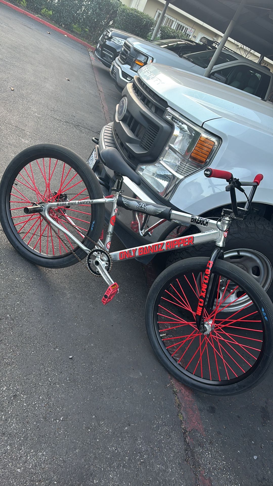 Se P.K ripper is 27.5 inches in good condition runs as smooth as lotion and the Shimano mt200 breaks work well, they don’t squeak or make any noise.Also has a red sticker kit and red spokes and is a really cool bike and also glows in the dark. Looking to do 650 for it or down to do bike trades just let me know.(Pick up and cash ONLY!)