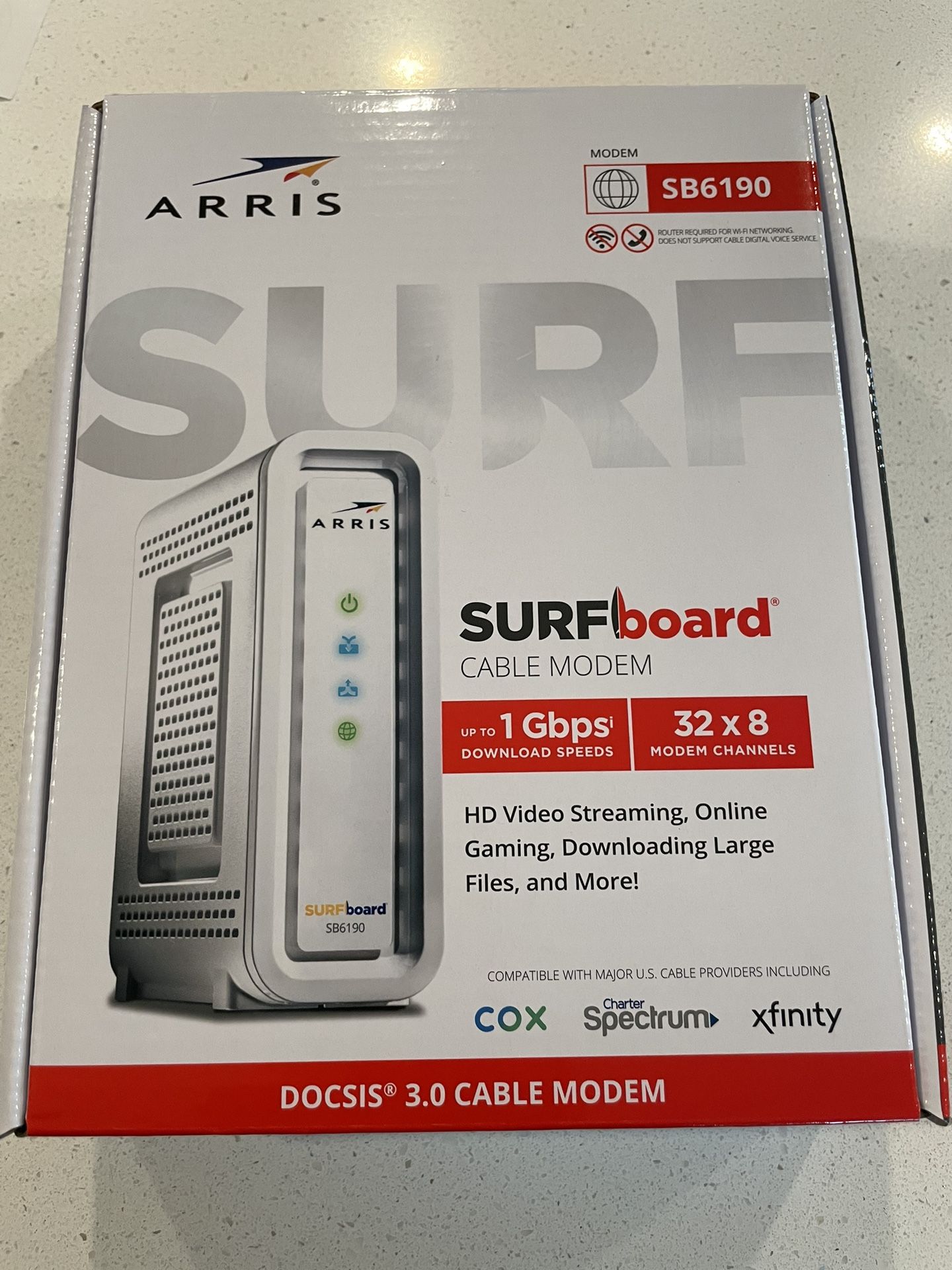 Purchased 4/25/23 Used for only 5 weeks Cox constantly had service issues in my area so I had to switch companies Modem is perfect still has protective wrap on front $79 new. Half off.
