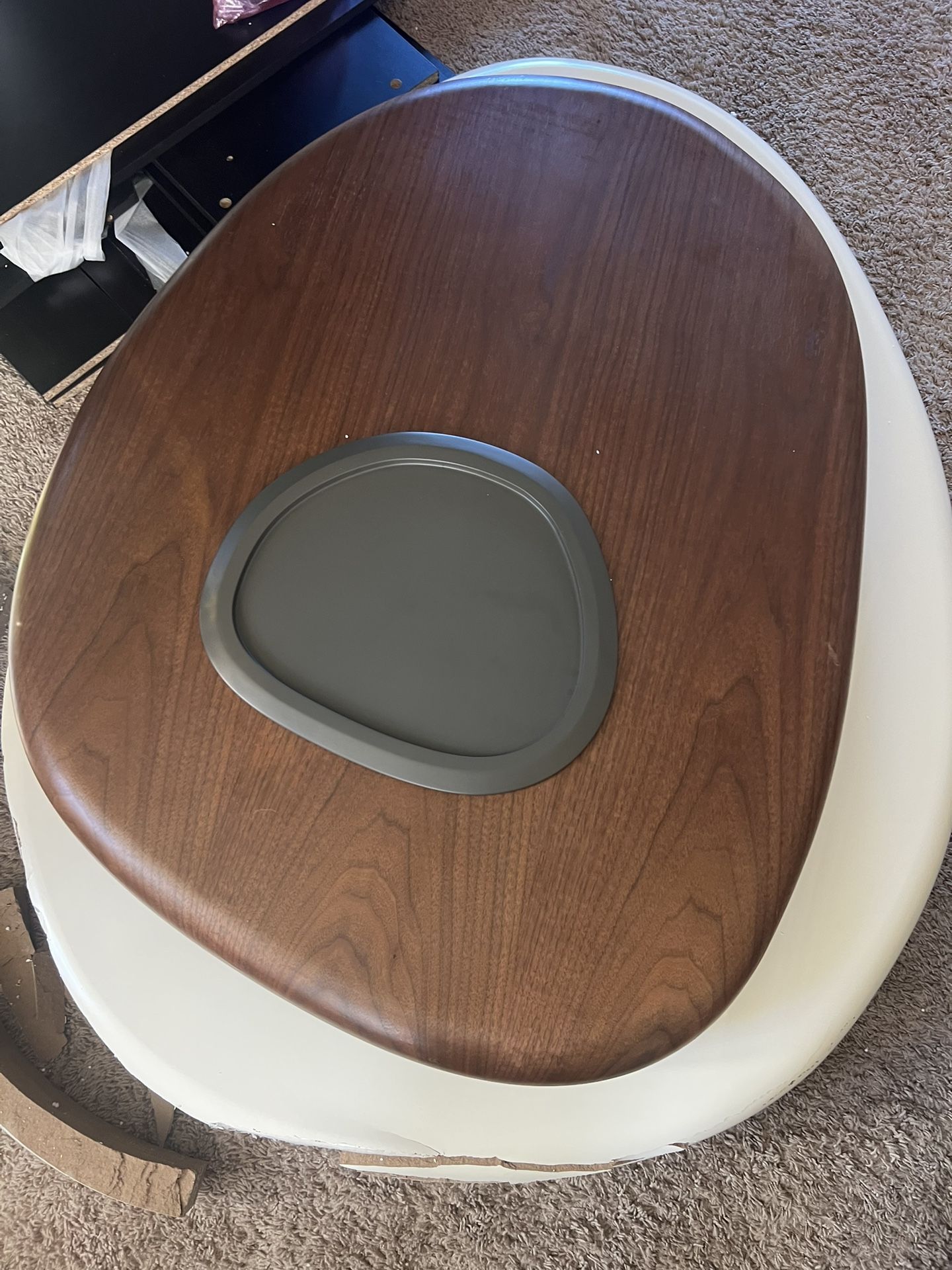 The corner of the table is broken.