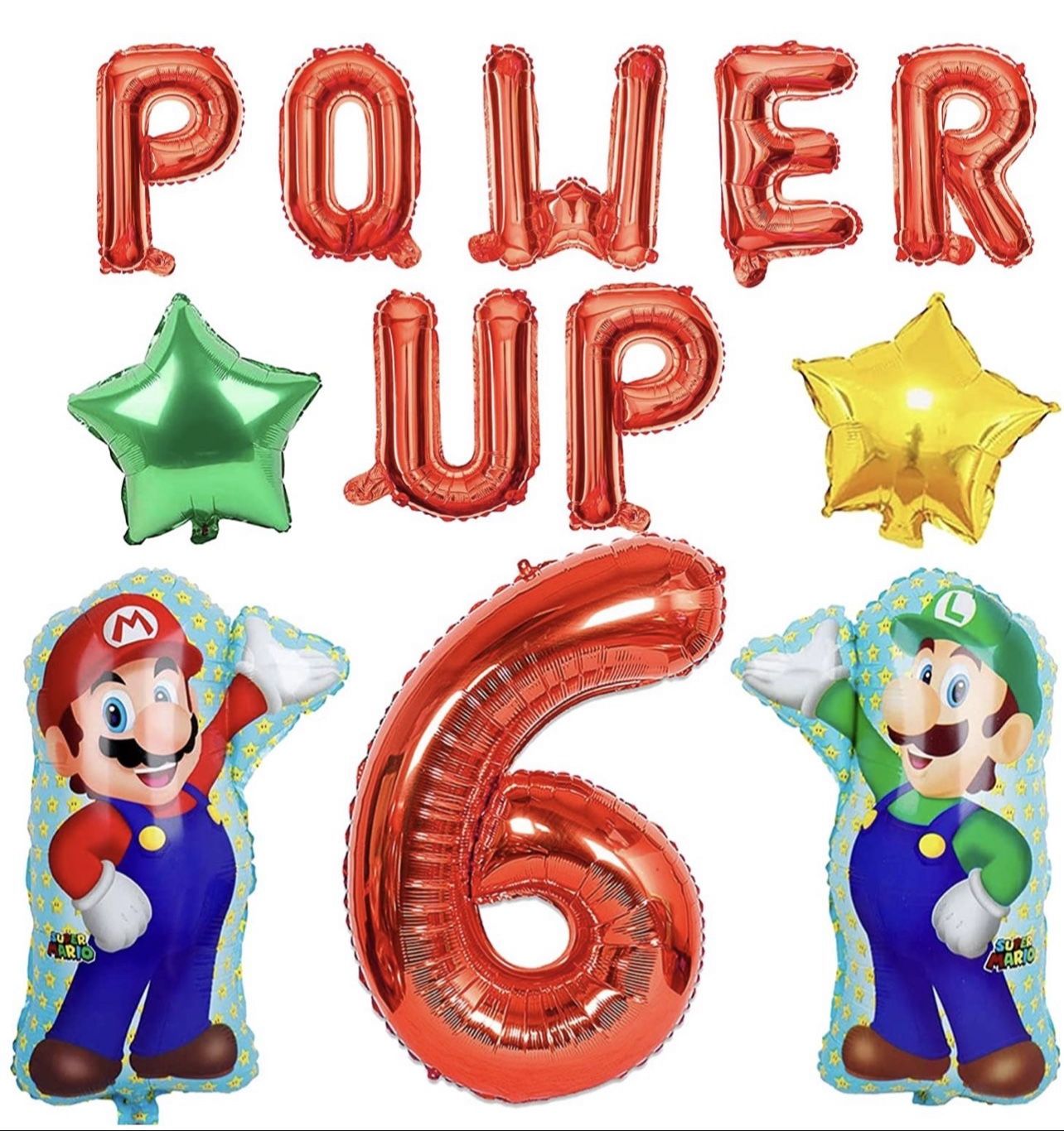 NEW IN BOX ... All sales are final,NO RETURN ,Please NO offers ... FIRM PRICE! LOW BALLERS will be ignored☺ SERIOUS BUYERS ONLY PLEASE ! Package include:12 PCS Super Brother Balloons including 7PCS Letter Balloons(POWER UP),2PCS Character Balloons,2PCS Star Balloons(Green and Yellow),1PC Number 6 Balloon,Make your party full of colors and fun! Birthday party Decoration:You can use Colorful balloons bouquet to decorate Kid’s party place into a anime world, making children feel novel and happy! Perfect Material:superhero Balloons are made of high quality foil,Safe, Non-Toxic And Reusable. The Smooth Touch Of Balloon Surface Gives You a Good Experience Wide Application:Super Party Balloons garland are best decorations for Baby show ,Kids Birthday Party,Six years old Birthday Party,the colorful balloons bouquet are also a perfect gift with surprise