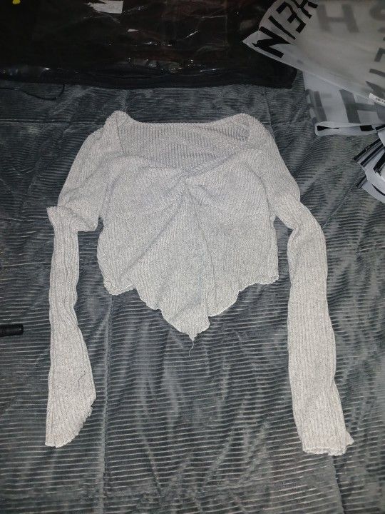Cream long sleeve sweater it shapes to a "V"in the front but not in back
