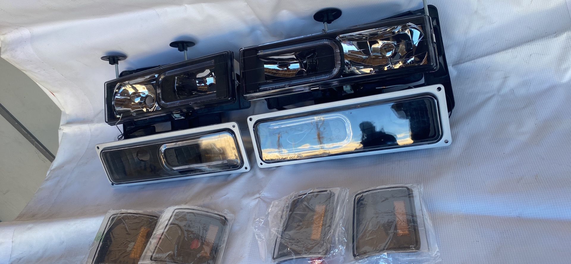 Brand new c bar headlight and bumper light combo also comes with corner lights fits 94-98 chevy / gmc truck $120 pick up in Montclair California or we can also ship