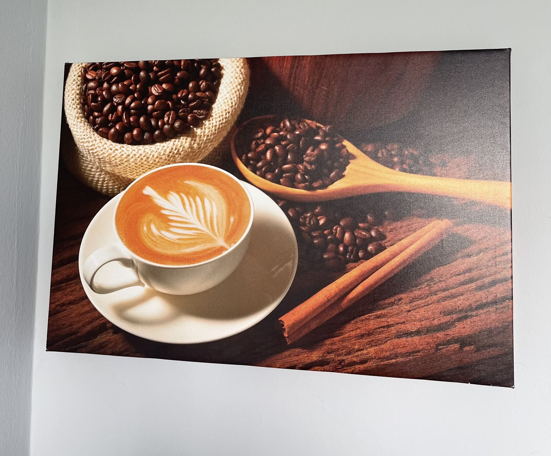 Canvas Prints Wall Art - a Cup of Cafe Latte and Coffee Beans | Modern Wall Decor/Home Art Stretched Gallery Canvas Wraps Giclee Print & Ready to Hang