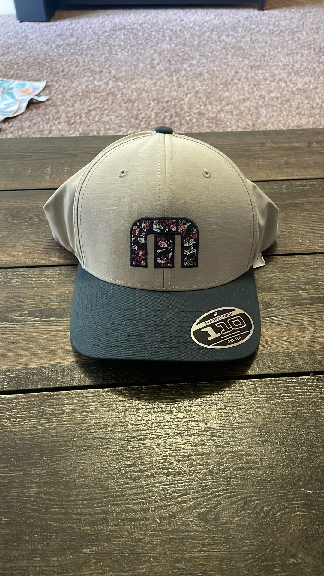 Travis Mathew snap back flexfit 110 NWT. Grey w/dark blue. Floral print emblem and under bill. $20