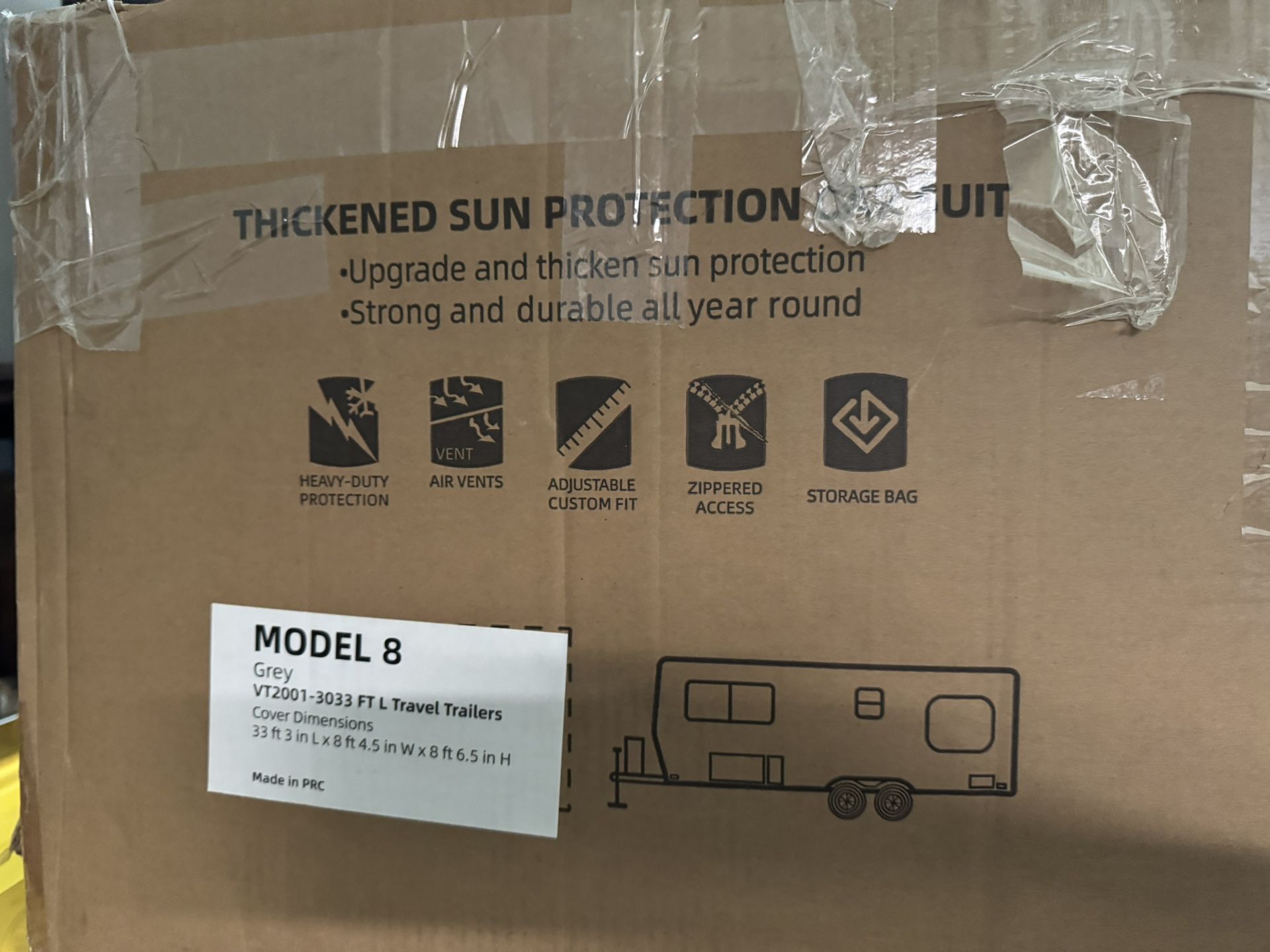 Brand new travel trailer cover it’s great for all four seasons very durable and it is brand new in the box never been used