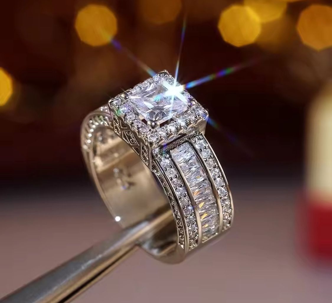 4CT Princess Cut Lab Created Diamond 18k White Gold Plated Halo Ring Mega Sale , Sizes 6,7,8