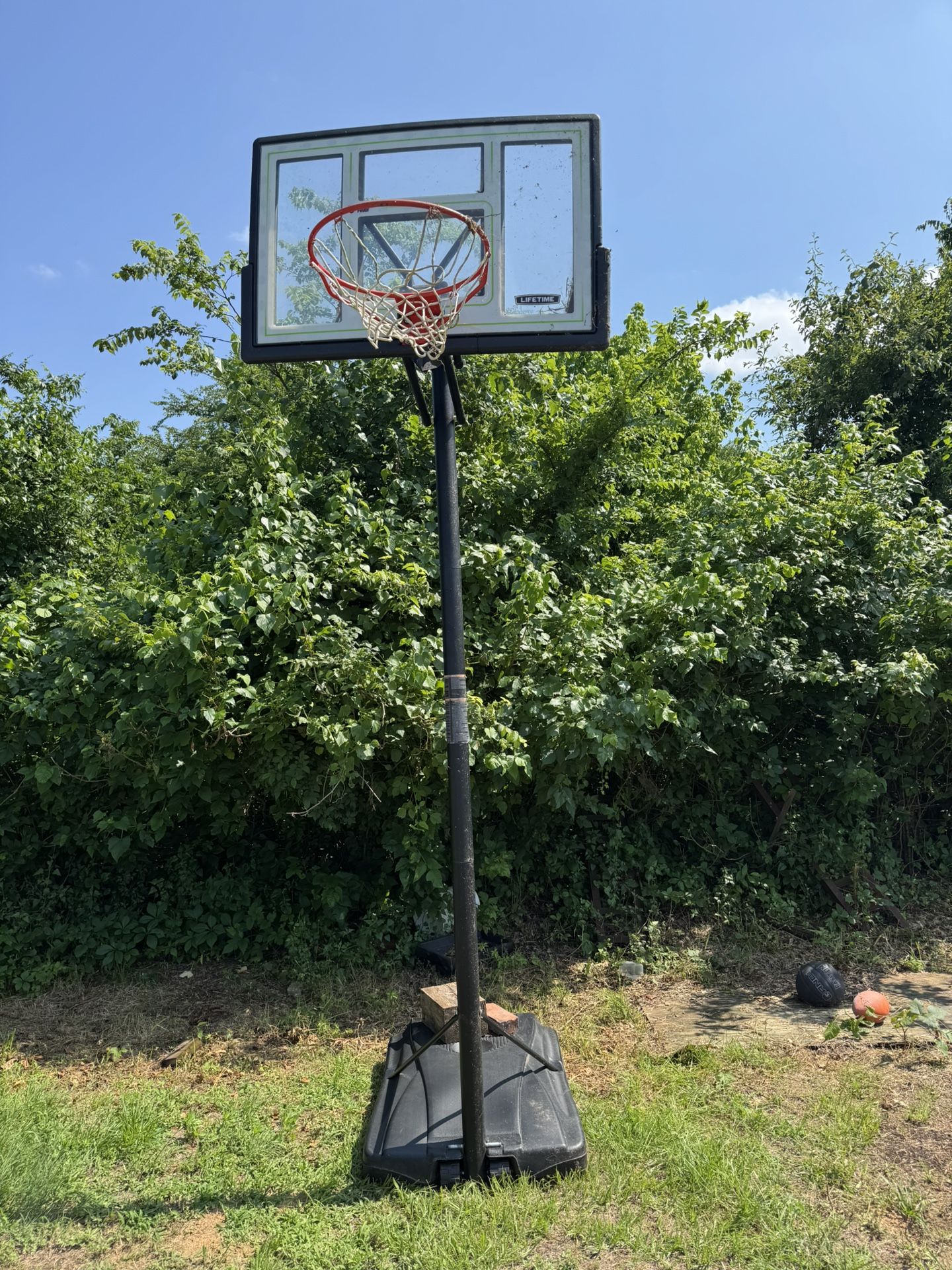 I have a Lifetime basketball goal that I don’t use anymore. The height adjustor is messed up so it’s a little tricky to adjust. Rim and backboard are still in good condition.