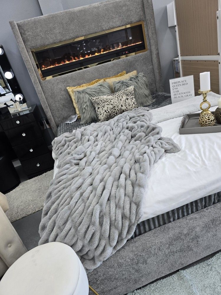 ✨️ Queen, King Light Up Fireplace bed frames 👉 Furniture Sectionals, Bedrooms, Dining Avail