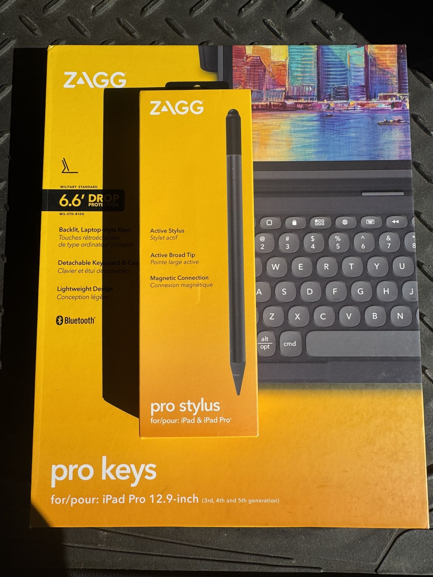 Upgrade your iPad experience with this fantastic Zagg bundle! Includes the Pro Keys Bluetooth keyboard case (fits iPad Pro 12.9" Gen 1-6 AND iPad Air 13") and the Zagg Pro Stylus. Both are in excellent condition and offer a great alternative to Apple's accessories. This setup provides a comfortable typing experience with a detachable keyboard and a precise active stylus with tilt recognition and magnetic attachment. Asking $70 or best offer (OBO). Retails for $220 ($170 for the keyboard, $50 for the stylus). Local pickup preferred in Buckley.