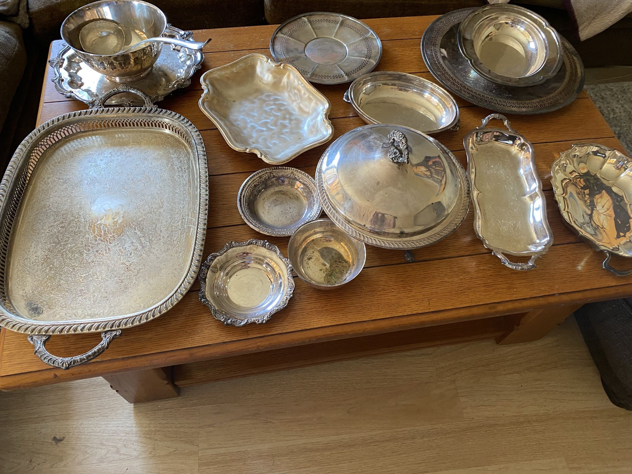 I have an variety of many different silver plated serving dishes, bowls, platters,etc. I also have many different pieces of antique china. Prices start at $10.00 a piece