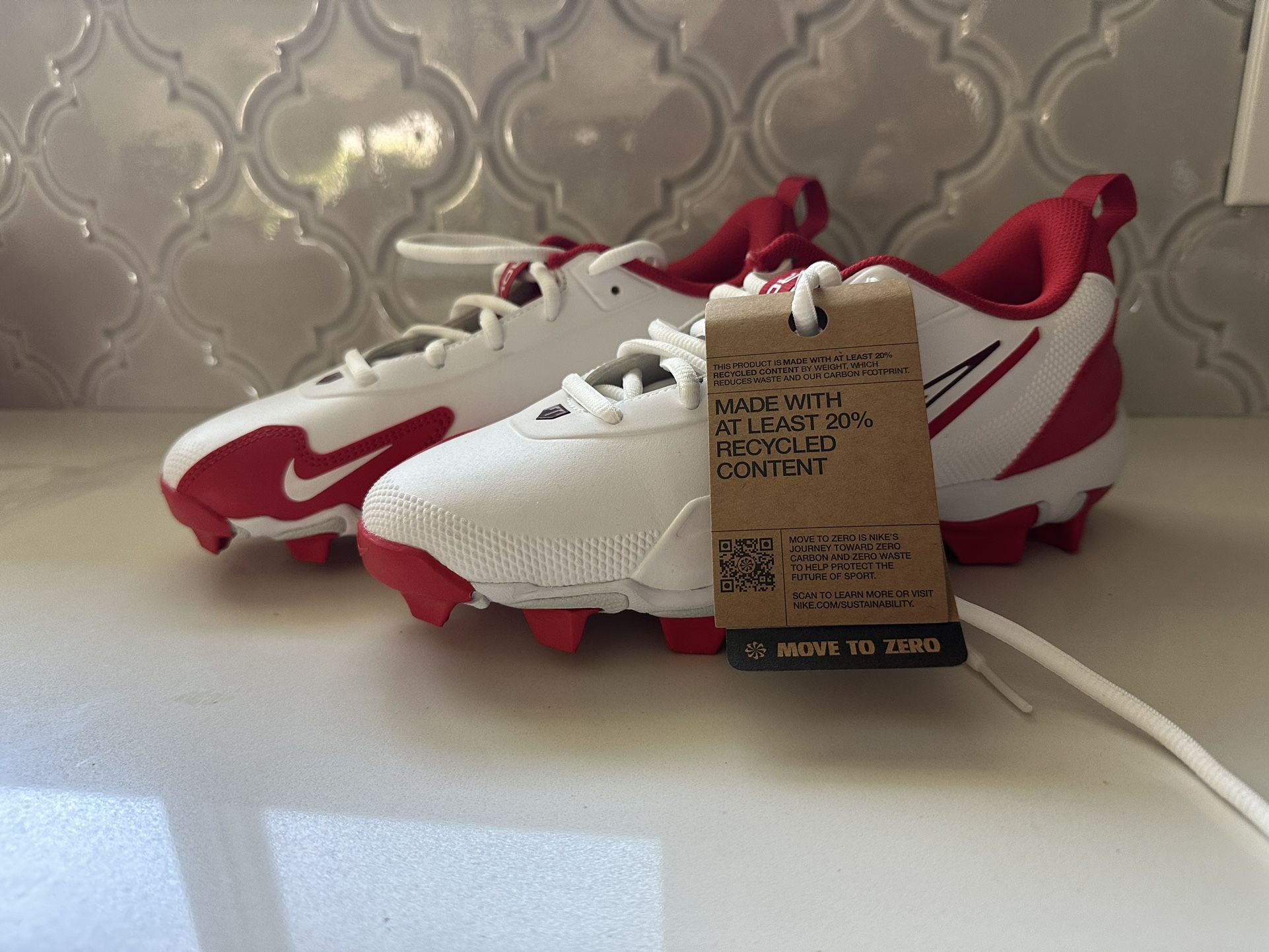 Brand new. Never used. Force Trout nine Keystone red and white Nike cleats. Size 5.5 youth.