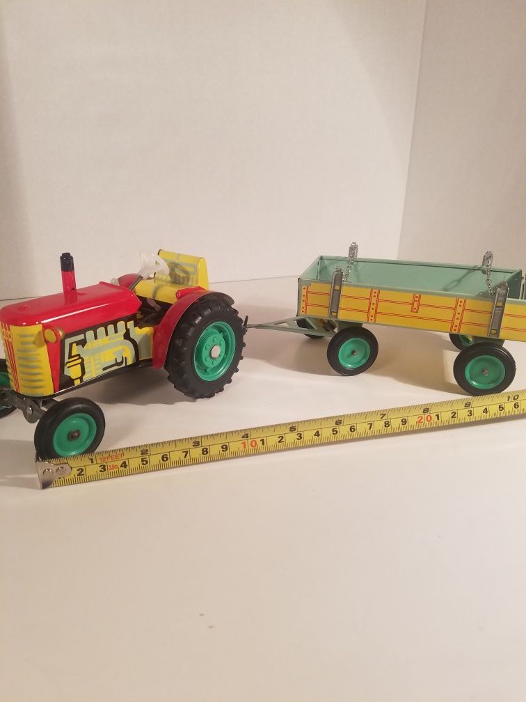 Vintage 1960 Czech KDN Wind Up Farmers Tractor and Cart Tin Toy. Does NOT have key to wind up. I'm great condition. Able to meet near Jones and Warm Springs. Please message with any questions!