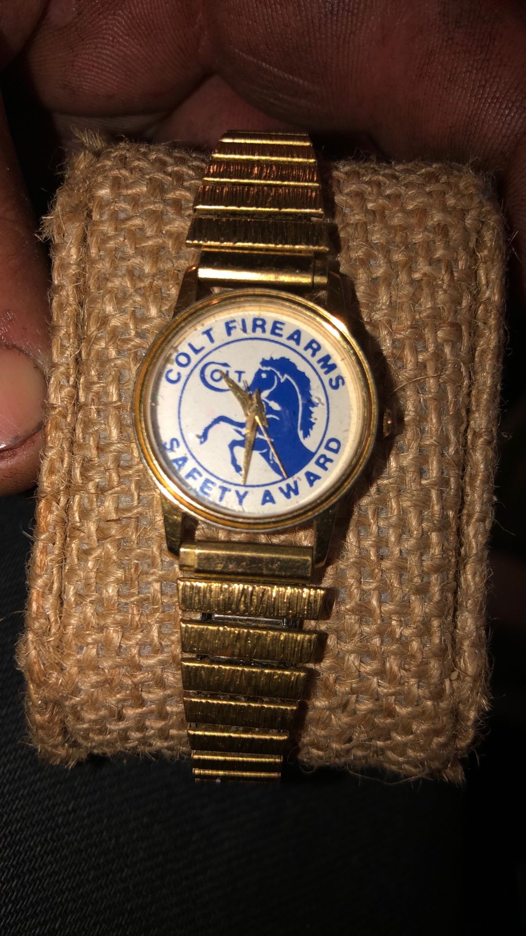 Small 14k gold plated watch with colt firearms logo in face Was given to my family in the early 90s Barely worn Great condition