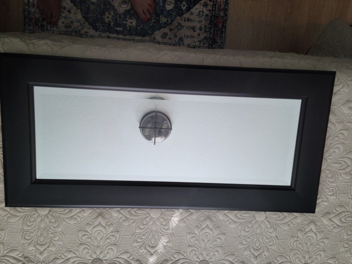 Rectangle framed mirror, beveled Black frame Hardware to hang horizontal or portrait 33.5" x 15.5"