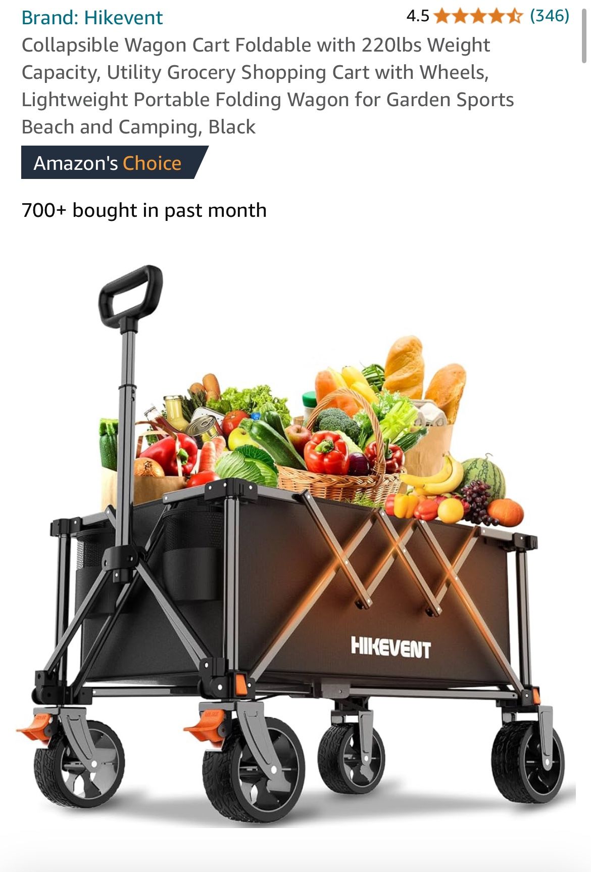 Collapsible Wagon Cart Foldable with 220lbs Weight Capacity, Utility Grocery Shopping Cart with Wheels, Lightweight Portable Folding Wagon for Garden