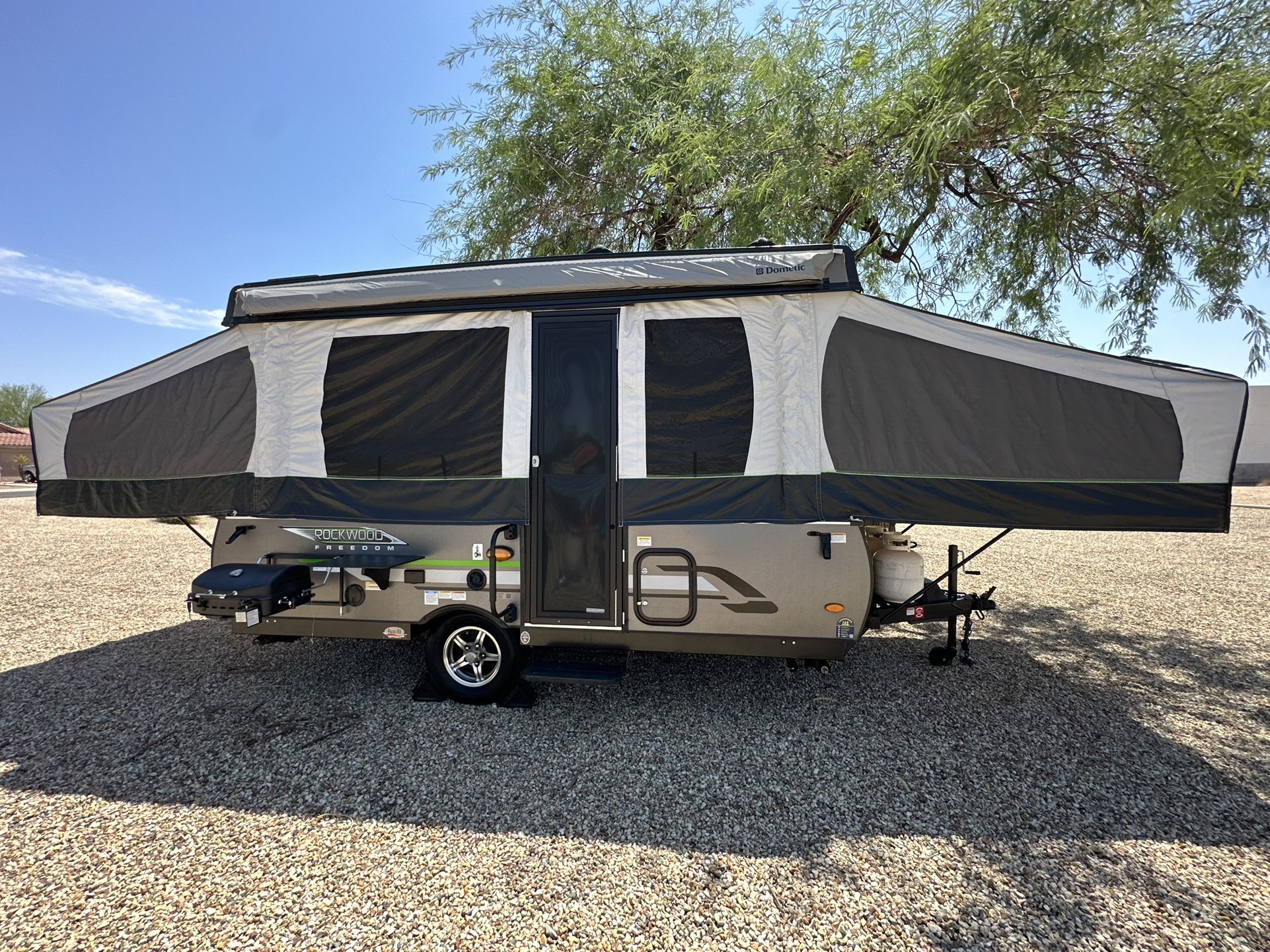 2021 Rockwood Freedom 2318G Luxury pop up camper with many great options Like new condition, clean title, Asking $12,800 Features: Roof Air Conditioner Electric automatic roof lift Slide with Dinette/bed Indoor shower and toilet King and queens beds Heated mattresses Furnace Gaucho sofa bed 3 way refrigerator Sink 3 burner stove Outdoor gas grill with side table Awning with LED lights Outdoor shower Dual propane tanks Dual batteries And more Specs: Closed length 16ft 10in Dry weight 2439lbs Width 7ft Freshwater capacity 20gal  Hitch ball size 2in