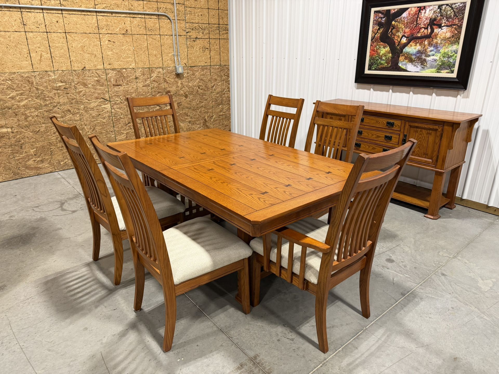 Solid Oak Dining Table Set with 6 Chairs & Buffet