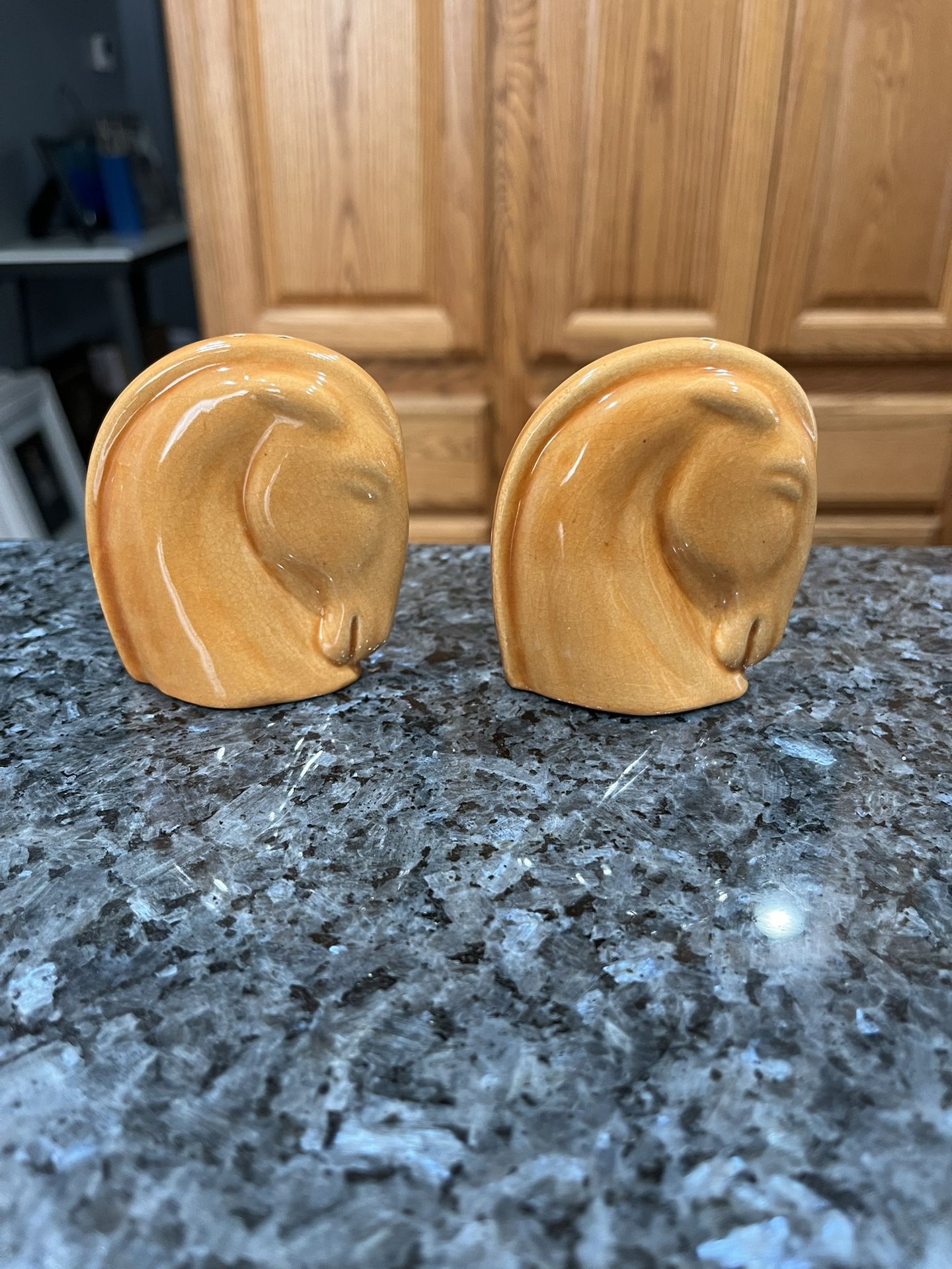 Vintage Rare Mid-Century Horse head pair of salt and pepper shakers. Size approximately 3 inches tall. Preowned no stoppers. Has been on display in