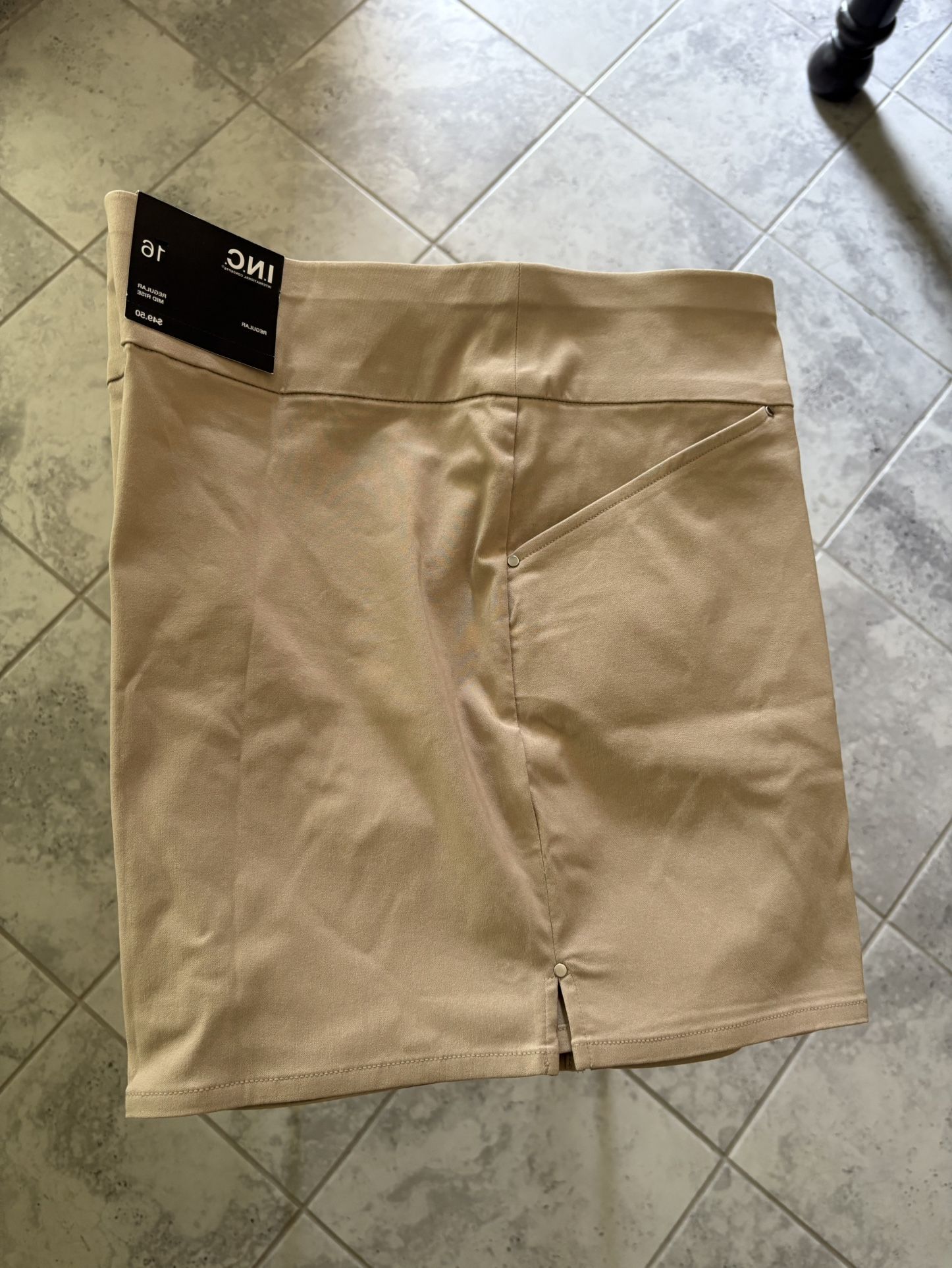 Solid mid rise shirts, toasted twine, high rise waist, side slit and miniature studded accents. 75% rayon, 22% nylon, 3% spandex Brand New. Never Worn. Purchased wrong size on non refundable sale. Just looking to break close to even.