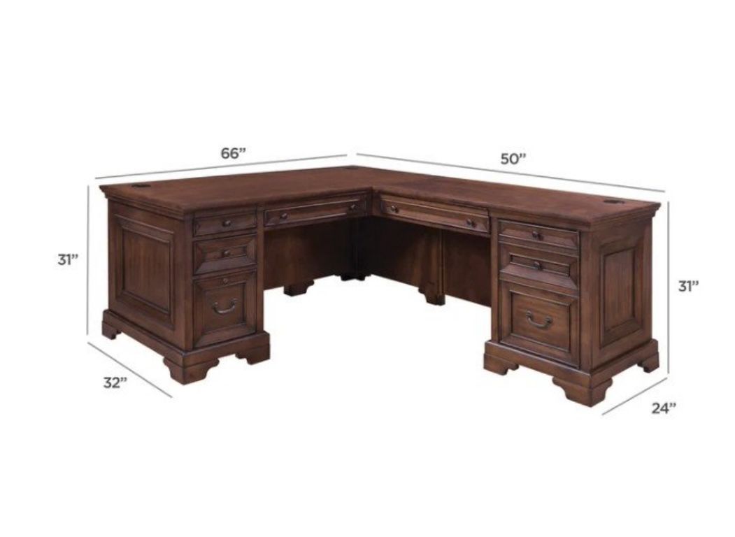 L Shape Office desk. Solid wood. Great condition. Originally bought from RC Willey. Stock photo is for measurment reference. Desk is in two sections ready to move. Northwest. Centennial Hills area.