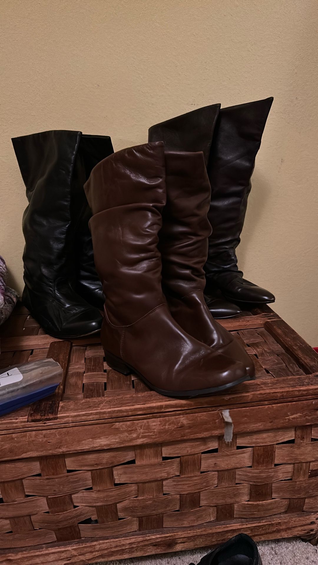 Great condition Perfect variety for winter wardrobe Tall Dark Brown Boots the brand is Mixed Blues Carmel Colored brand is St. John’s Bay Black pair is a no name See pics Priced to sell $20 for all!!