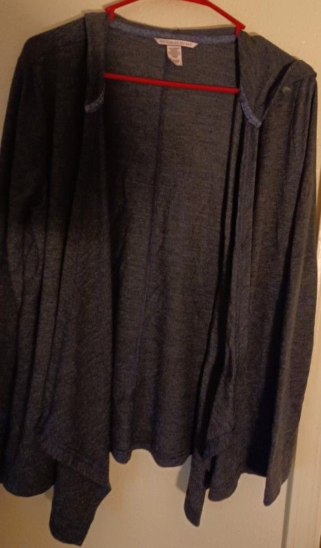 Ladies X- Small Gray Cardigan Sweater With Hoody.
