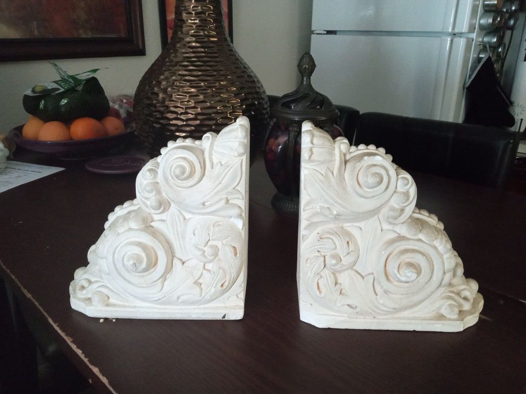 Solid heavy bookends, scroll design, 8 1/4 Hx8” L, can be painted or embellished as you choose