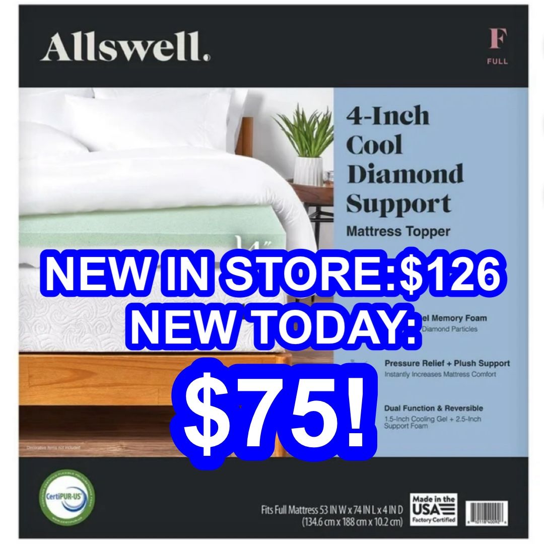Brand New Still Wrapped 4” Cool Diamond Support Mattress Topper by Allswell! Will deliver! $75! Need gone ASAP!