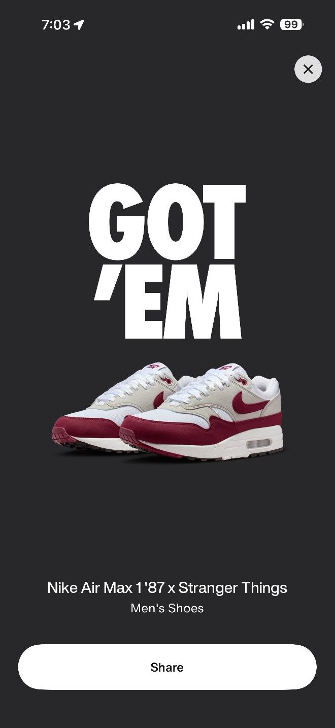 New Airmax 1 '87 X Stranger Things Mens 11.5