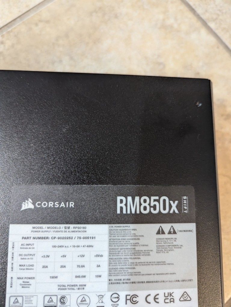 See bundle discount at bottom. Description: This is a Corsair RM850X SHIFT Gold Plus that uses type-5 cables (not the older RM850x). I bought this a couple months ago as part of a whole used PC but wanted to upgrade to a 1200 watt PSU due to GPU upgrade. This PSU was manufactured in May 2023 (its on the serial number not included in photo). The person who I bought it from built his PC in June 2023. I only used it for a week to test components before a month long work trip. Included cables (all flat): EPS / ATX 12V 8-pin (4+4) - CPU cable (qty 2) Modular ATX Cable (24-pin) - Mobo Cable (qty 1) PCIe 8-pin (6+2) (6+2) - (standard Graphics cable) (qty 1) (this is a single 8 pin from PSU that can split to (6+2) x 2 into GPU) SATA (4 SATA) (SSD/HDD power cable that splits up to 4 individual ports) - (qty 1) White PCIe 8-pin (6+2) - (I'm including this from my white RM1200x Shift, all Corsair type-5 shift cables are compatible, I can provide proof but look it up). White SATA (4 SATA) (SSD/HDD power cable up to 4 ports) - (qty 1) Not included: 12V-2x6 (12+4) pin (for higher end GPU 40-50 series cards without need for splitter). This was not included from the seller to me. Hence why I'm providing the compatible type 5 white PCIE cable if needed (for splitter only). On request only as a kind gesture, I can include 3 PCIE white cables total (for GPU) if aesthetics are important to you). $70 OBO, cash preferred, zelle ok once verified. Also selling (bundle discount if buying together), all items were new from Mid 2023: 32gb (16x2) Corsair DDR5 6000mhz CL40 - CMH32GX5M2B6000C40 - $70 OBO.